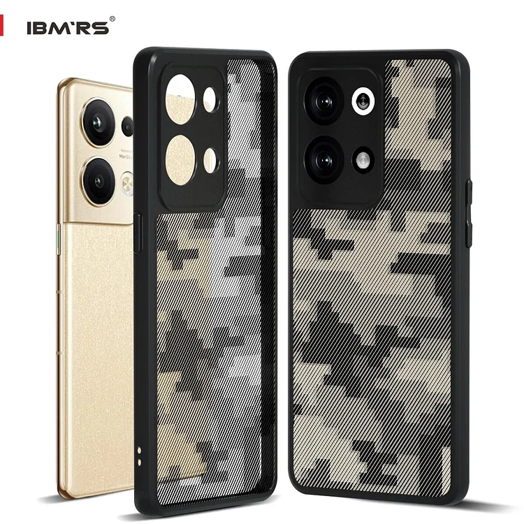 BMRS for Oppo Reno9/9 Pro Case, camo Clear Hard Back Shockproof Advanced Protective Cover - Black